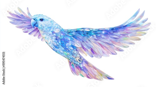 © matoya, Fototapeta premium Crystal Parrot Soaring, White Background, Design Element