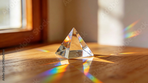 Fototapeta premium Crystal Prism on Wooden Surface.