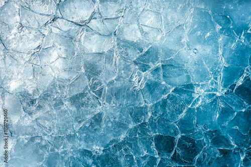 Fototapeta premium Crystalline blue ice surface with abstract fractures and texture