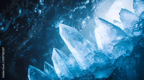 © Thiago, Fototapeta premium Crystalline ice cave with captivating blue hues. Crystalline Ice Shards. Illustration