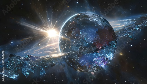 Fototapeta premium "Crystalline Planet Orbiting a Pulsar Star"
