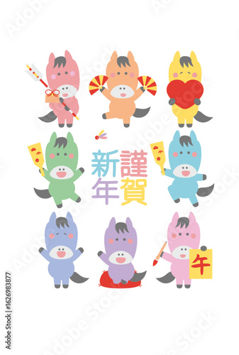 © ゆきんこ, Naklejka premium 2026年賀状有料2cs_謹賀新年虹色