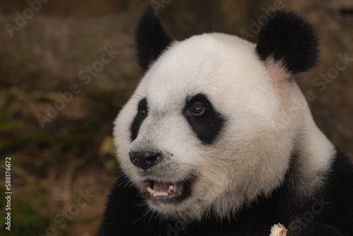 Fototapeta premium Cub of Giant Chinese panda bear eating bamboo Chengdu, China