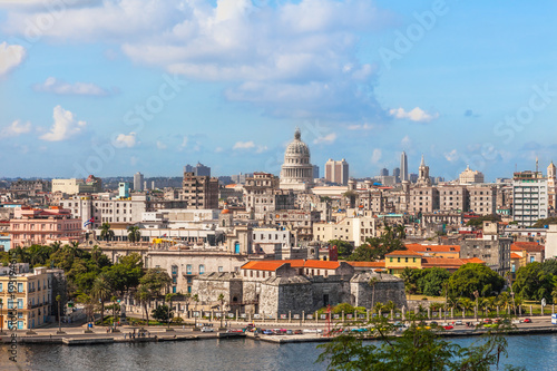 Fototapeta premium Cuba, close up view of the Old Havana city with historical buildings and monuments from Morro Castle.