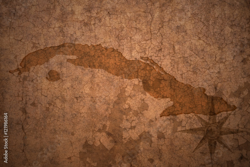 © luzitanija, Fototapeta premium cuba map on a old vintage crack paper background