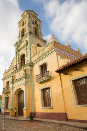 Obraz premium Cuba, Trinidad, woman entering Church and Monastery of Saint Francis (Iglesia y Convento de San Francisco). Trinidad and the Valley de los Ingenios is a UNESCO World Heritage Site