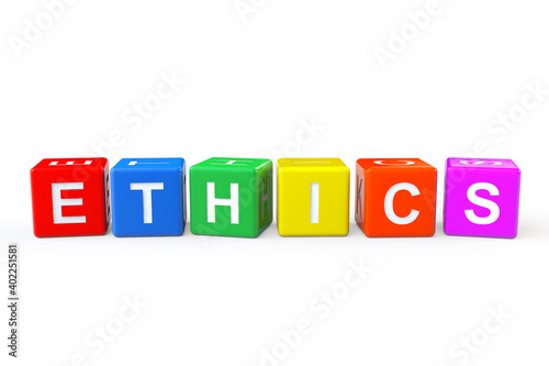 Obraz premium Cube Blocks with Ethics Sign. 3d Rendering