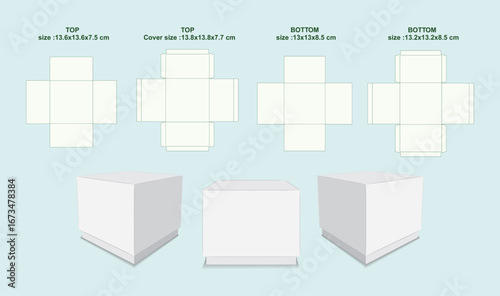© setiajipamungkas, Fototapeta premium Cube box cutting Out template and Mockup EPS Vector