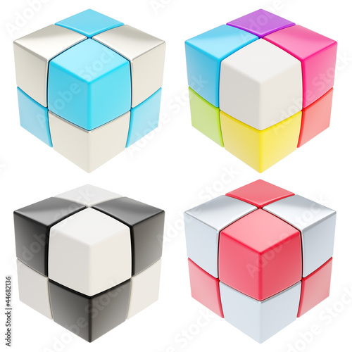 © Dmitri Stalnuhhin, Obraz premium Cube made of colorful cubes isolated, set of four