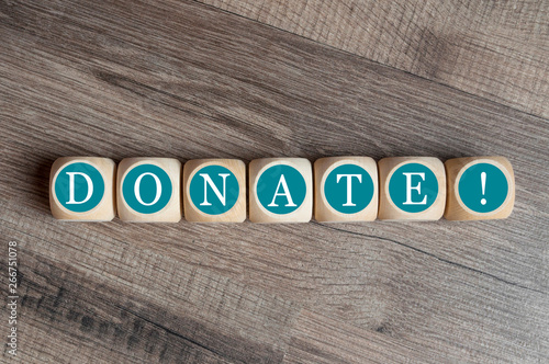 © Stockwerk-Fotodesign, Fototapeta premium Cubes and dice with donate on wooden background