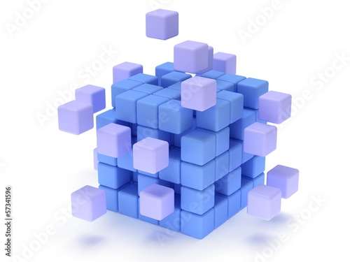 © newb1, Obraz premium Cubes block. Assembling concept. On white.