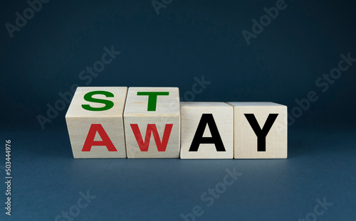 © Prazis Images, Obraz premium Cubes form the words Stay or Away. The concept of social problems and lifestyle