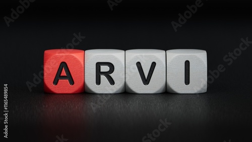 © feng, Obraz premium cubes with the word arvi. Care concept.close up of wooden elements,Business Concept.3D rendering on black background.