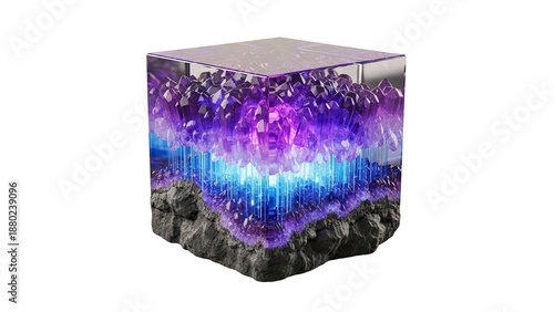 Fototapeta premium Cubic Amethyst Geode with Glowing Blue Light