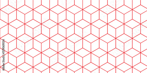 © armans, Naklejka premium Cubic hexagon texture. Geometric cube grid seamless pattern. Geometric pattern illustration mosaic, square and triangle wallpaper. Line isometric grid.