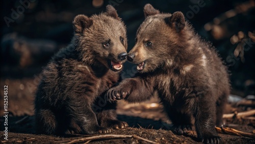 © Владлена Демидова, Obraz premium Cubs playing, joyful and energetic interaction.