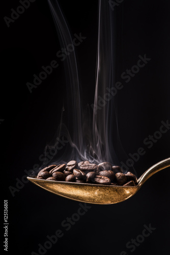 Obraz premium cucchiaio fumante con chicchi di caffè