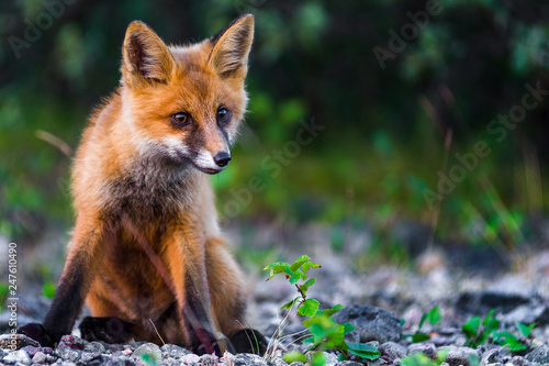 Naklejka premium cucciolo di volpe in norvegia d'estate