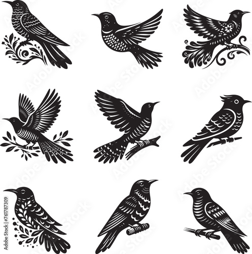 Obraz premium Cuckoo bird silhouette vector illustration set