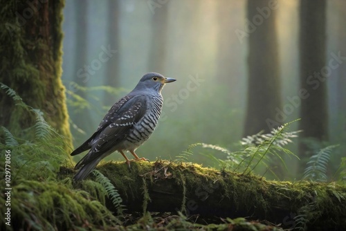 Fototapeta premium Cuckoo in a Misty Forest at Dawn