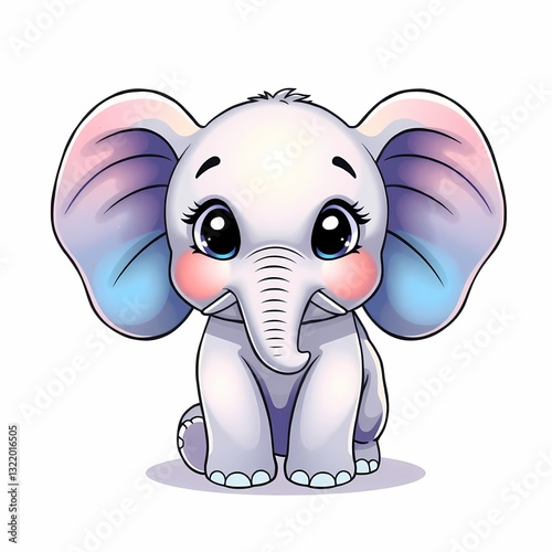 Fototapeta premium Cuddly Cartoon Elephant: A charming cartoon illustration of a baby elephant with large, expressive eyes, sitting cutely.