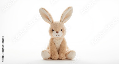 Obraz premium Cuddly plush rabbit with elongated ears seen on white background
