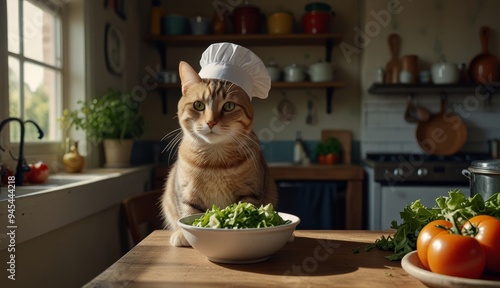 © Василь Тігай, Obraz premium Culinary Cat in Chef Hat
