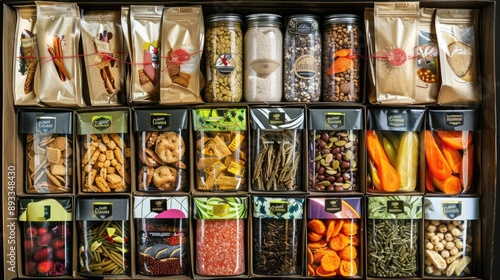 Fototapeta premium Culinary festival gift box with assorted organic snacks, healthy eating,...