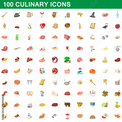 © juliars, Naklejka premium 100 culinary icons set, cartoon style