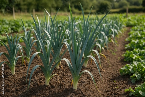 Fototapeta premium Cultivating Leeks in a Community Garden