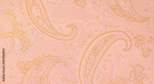 © Irfan, Fototapeta premium Cultural Design Soft Pink Gold Paisley Inspired Japanese Kimono Fabric Textile Pattern