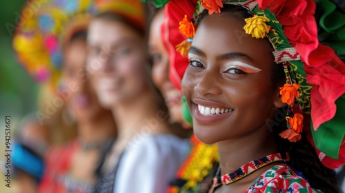 Fototapeta premium Cultural Exchange: Friends from different cultural backgrounds engaging in mutual learning of traditions and customs, expanding their understanding and appreciation of the world.