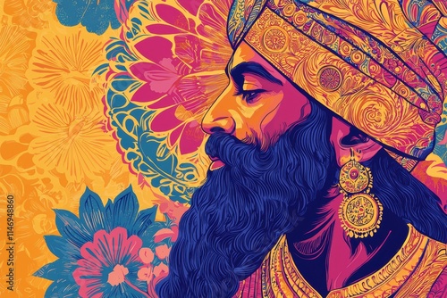 Fototapeta premium Cultural Poster Design Featuring Guru Nanak with Vibrant Punjabi Art and Sikh...