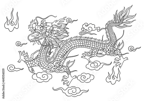 Naklejka premium Culture traditions asia Chinese dragon graphics on a flat colored background.