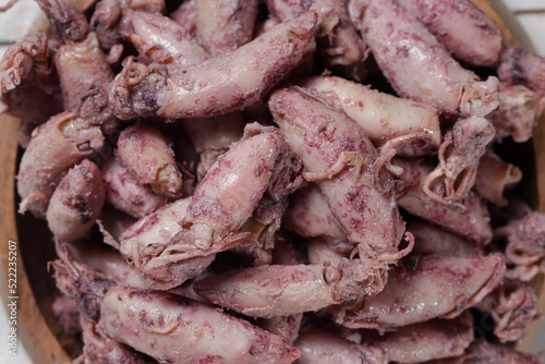 © menik, Naklejka premium Cumi Asin mentah or raw fresh salted squid or salted cuttle fish.