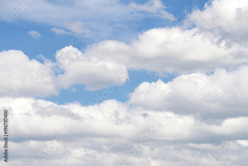Fototapeta premium Cumulus and Cirrostratus clouds against a blue sky.