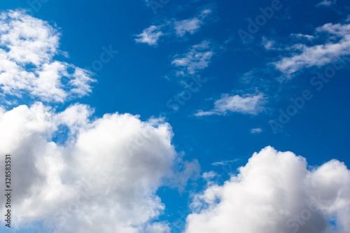 Fototapeta premium cumulus and high-cumulus clouds of an average tier on blue heavenly space