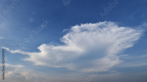 Obraz premium Cumulus cloud on beautiful blue sky , Fluffy clouds formations at tropical zone , Thailand