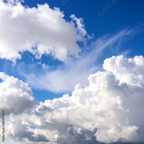 Fototapeta premium Cumulus clouds against a vibrant blue sky (1)