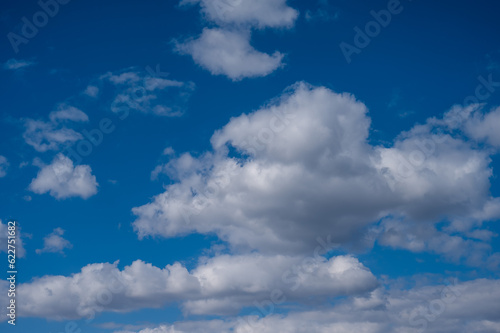 Naklejka premium Cumulus clouds against the blue sky on a summer day.