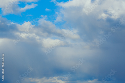 Fototapeta premium Cumulus clouds. Beautiful dark blue dramatic sky. Copy space for lettering....