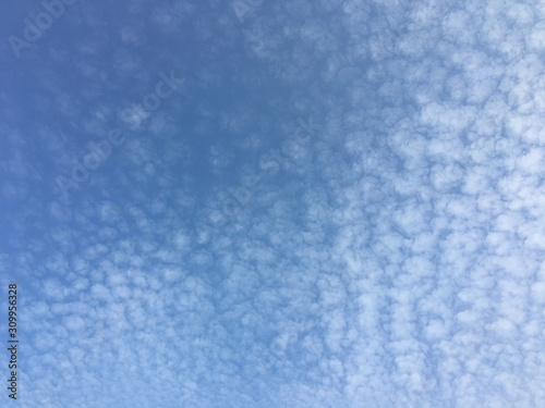 © Pichchapatr, Obraz premium Cumulus clouds in blue sky. Beautiful white cloud and blue sky background texture and wallpaper.