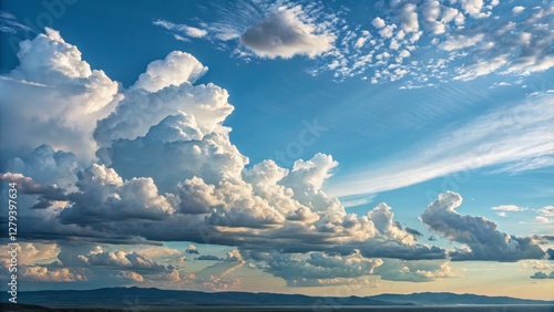 Obraz premium Cumulus Cloudscape Wide Shot Composition, Dramatic Lighting, Serene...