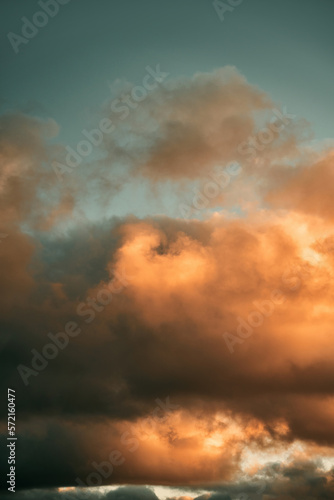 © AlexGo, Obraz premium Cumulus sunset clouds with the sun setting down. Amazing sky summer evening background.
