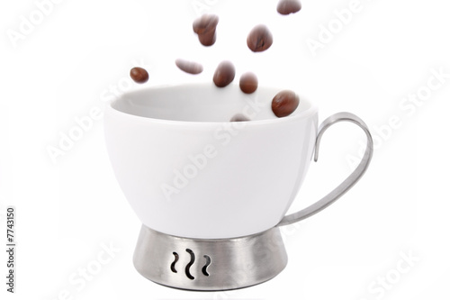 Obraz premium Cup and coffee beans isolated on white background