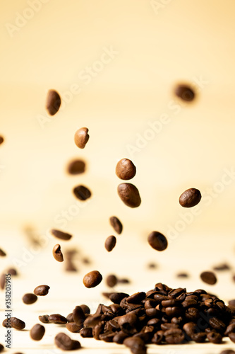 © Meryfersil, Obraz premium cup, coffee beans and wood