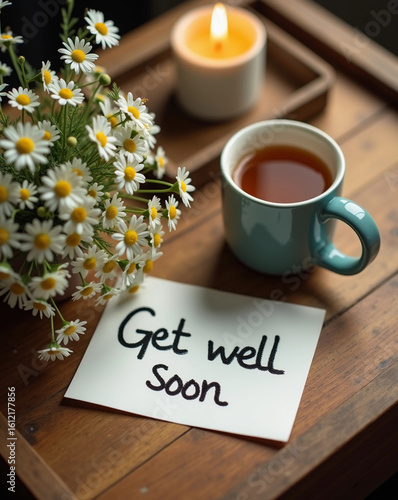 © Alena Peshekhonova, Naklejka premium Cup of care - cozy postcard Get well soon