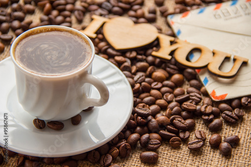 © 201122, Fototapeta premium cup of coffee and a letter on the table