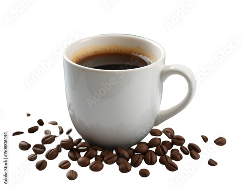 Fototapeta premium Cup of Coffee with Coffee Beans on Transparent Background