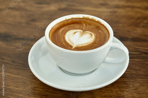 Obraz premium Cup of coffee with heart pattern